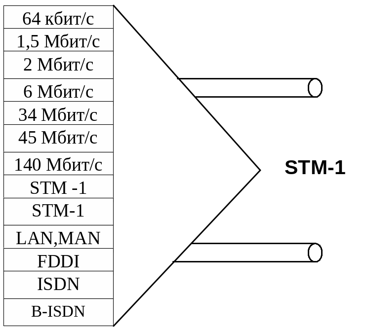 2. Трибы упакованы в стандартные помеченные контейнера. Возможные интерфейсы синхронного мультиплексора представлены на рис. 2.4;