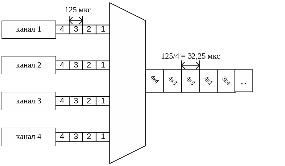 Рис. 2.3. Мультиплексирование с чередованием бит