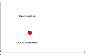 Если выбрать какую-то точку расчетной области, то значение в ней будет зависеть от значений функции (в данном случае распределения температуры) в предыдущие моменты времени на всем отрезке. Если в этой точке изменить значение функции (внести возмущение), то оно повлияет во все последующие моменты времени на значения на всем отрезке.