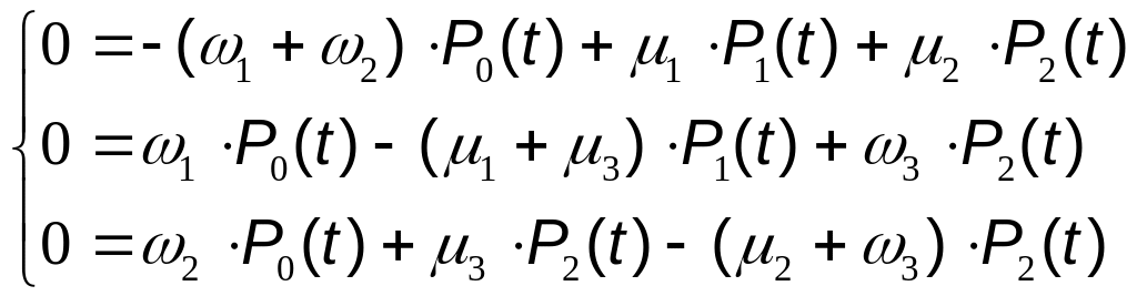 Запишемо систему диференціальних рівнянь, що описують перехід системи із одного стану в інший, при цьому знак «+»- перехід у сторону стану, що розглядається.
