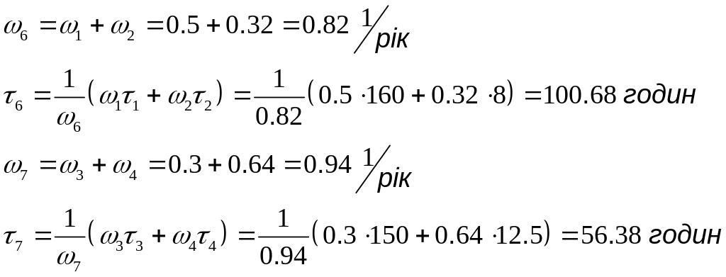 - •2. Елементи блока (котел, турбіна, генератор) з‘єднані послідовно. Визначаємо результуючі показники надійності блока (ωδ,τδ) за формулами: