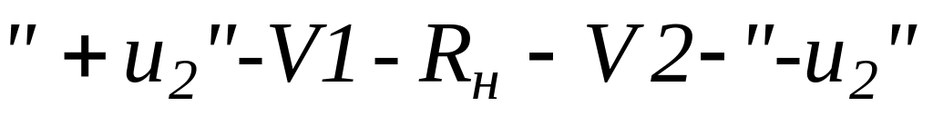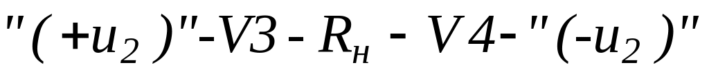 Вентили выпрямителя работают попарно-поочередно. Первому полупериоду 0 – соответствует полярность напряжения , показанная на рис. 1.10 без скобок. Это напряжение является прямым для вентилей и , через которые образуется контур протекания тока нагрузки по цепи: