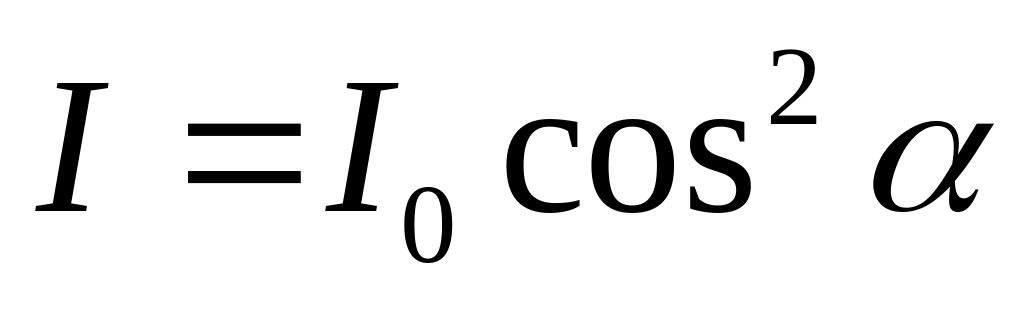 где I0 – интенсивность поляризованного света, падающего на анализатор; I – интенсивность поляризованного света, прошедшего через анализатор; – угол между направлением колебаний светового вектора волны, падающей на анализатор, и плоскостью пропускания анализатора.