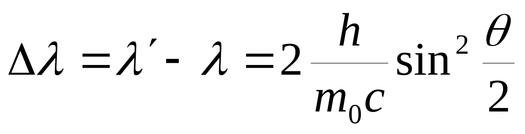 где – длина волны фотона, встретившегося со свободным или слабосвязанным электроном; / – длина волны фотона, рассеянного на угол после столкновения с электроном; т0масса покоящегося электрона.