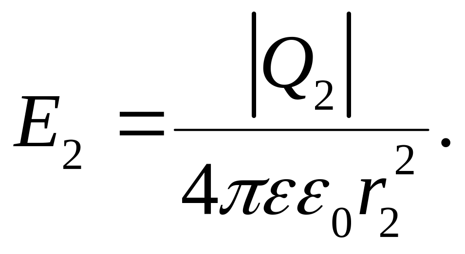 Модули напряженности электрических полей, создаваемых точечными зарядами Q1 и Q2 в среде с диэлектрической проницаемостью рассчитываются по формулам: