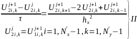 I sistemi k parametrinin qeyd olunmuş qiymətində üçdioqanallı matrisi olan xətti tənliklər sistemidir. Belə sistemin həlli Tomas alqoritmi (qovma üsulu) ilə tapılır. II system də i parametrinin qeyd olunmuş qiymətində üçdioqanallı matrisi olan xətti tənliklər sistemidir. Bu sistemin də həlli Tomas alqoritmi ilə tapıla bilər. Göründüyü kimi bir zaman layından digər zaman layına keçərkən iki birölçülü məsələnin həllini tapmaq lazım gəlir. Duqlas və digərlərinin təklif etdiyi dəyişən istiqamətlər üsulu da ikiölçülü məsələnin iki birölçülü məsələnin həllinə gətirir. Yuxarıdakı tənlik üçün bu üsul aşağıdakı şəkildə yazılır.