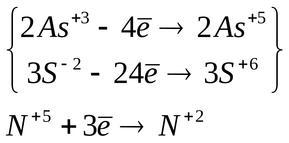 Как видно из данного уравнения, два иона мышьяка и три иона серы отдают 28 электронов, баланс равен 84. В качестве окислителя выступает HNO3, а воccтановителя - As2S3. Записываем схему реакции с учетом коэффициентов окислителя и восстановителя: