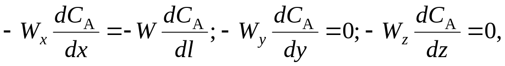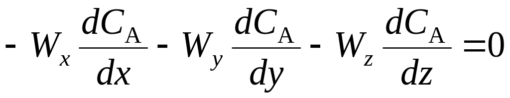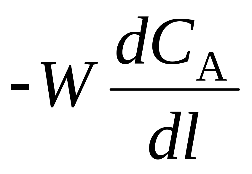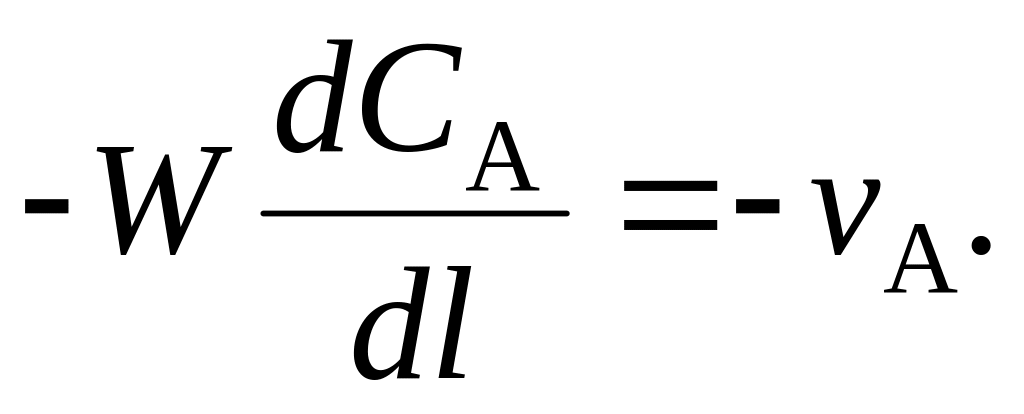 Уравнение (99) показывает, что при стационарном режиме изменение в потоке массы вещества А в данной точке реактора равно скорости расходования вещества А на химическую реакцию.