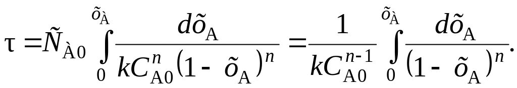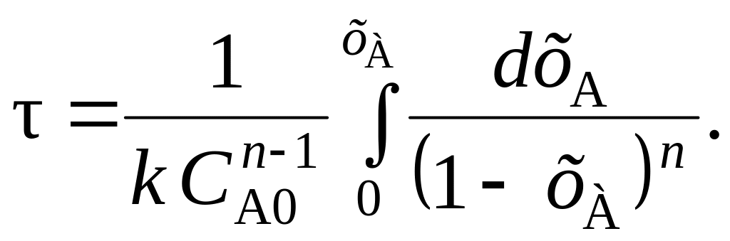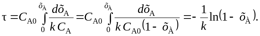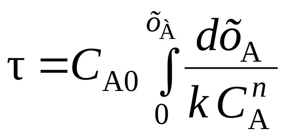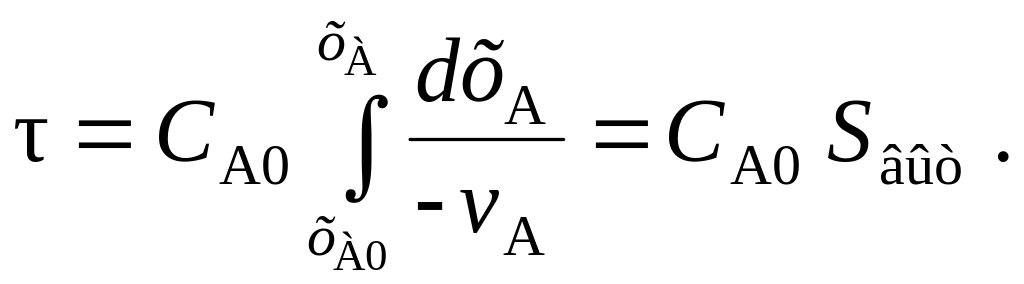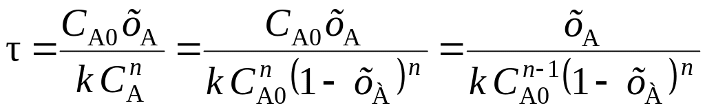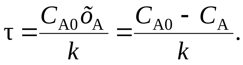 Это характеристическое уравнение реактора идеального смешения. Для более общего случая, когда начальная степень превращения хА0 не равна нулю, оно записывается
