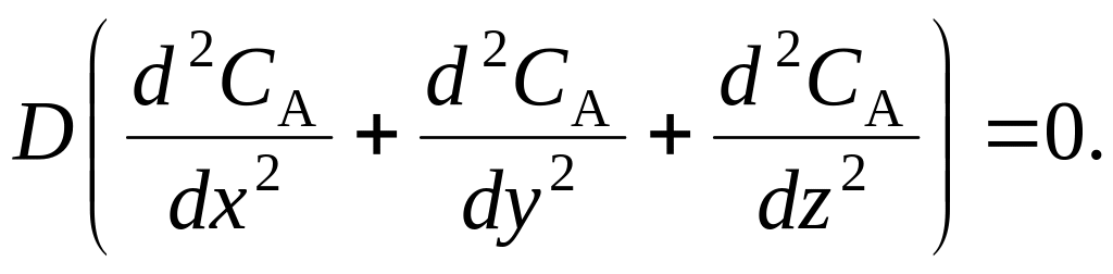Стационарный режим характеризуется тем, что параметры в данной точке реакционного объема не меняются во времени, т. е. dCA / dτ = 0. Тогда уравнение (98) примет вид