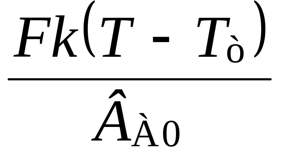 где F – полная поверхность теплообмена; k – коэффициент теплопередачи; Т – температура в реакторе; Тт – температура в теплообменнике; ВА0 – расход питания (количество кмоль реагента А, поступающего в реактор в единицу времени).