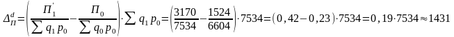 3. Для определения влияния фактора изменения объема реализации продукции и услуг вычислим индекс физического объема реализации: