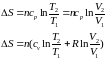 ΔU=ncv(T2 – T1) |