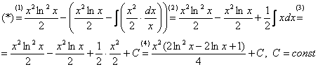 Под интегралом у нас снова многочлен на логарифм! Поэтому решение опять прерывается и правило интегрирования по частям применяется второй раз. Не забываем, что за в похожих ситуациях всегда обозначается логарифм.