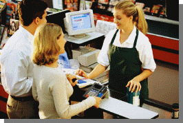 Організація розрахунків з покупцями в магазині залежить від застосовуваного методу продажу товарів. У більшості магазинів контрольно-касові машини установлені на прилавках, розрахунок у цьому випадку провадять продавці-касири (одночасна оплата).