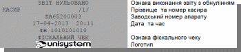 Денний нулюючий звіт (Z) можна виводити лише один раз у день вкінці роботи касира командою: 501 – ПС – 12321 – ПС.