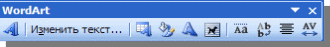 Відображення панелі WordArt на екрані та її видалення з екрана здійснюється за допомогою команди Вигляд/Панелі інструментів/WordArt.