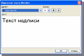 Цей текст можна змінити й потім, але якщо текст у вікні не був змінений, необхідно натиснути кнопку ОК, тому що натиснення кнопки Скасування рівнозначне відмові від створення об’єкта WordArt(рис1.9).