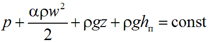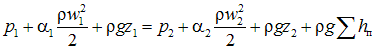 Это уравнение называют уравнением неразрывности потока, оно является первым основным уравнением гидродинамики. Из него следует, что средние скорости обратно пропорциональны площадям соответствующих живых сечений потока. Уравнение Бернулли является вторым основным уравнением гидродинамики, которое устанавливает связь между скоростью и давлением в потоке жидкости. Для потока реальной вязкой жидкости уравнение Бернулли, написанное для двух произвольно взятых сечений 1 и 2 по ходу потока, имеет следующий вид: