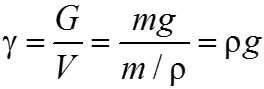 Для дистиллированной воды при 4 °С ? = 1000 кг/м3. Удельным весом ? (Н/м3) называют вес единицы объема жидкости: