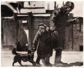 А.П.Чехов написал эту повесть в 1887 году. В ней повествуется о собаке по кличке Каштанка, которая потеряла своего хозяина столяра и оказалась в доме циркового дрессировщика. На иллюстрации изображён эпизод прогулки Каштанки с хозяином и его сыном – Федюшкой.