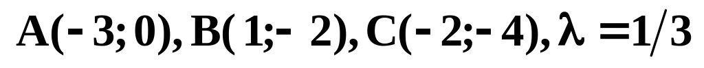 7) найти координаты точки М, которая делит отрезок ВС в отношении ;