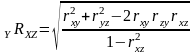 При наличии трех признаков x, z, y один из которых рассматривается как результативный (у), рассчитывается коэффициент множественной корреляции