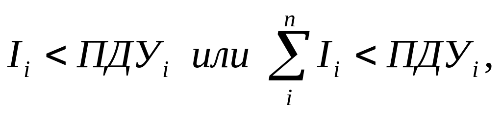 где Ii – интенсивность i-го потока энергии; ПДУi - предельно допустимая интенсивность i-го потока энергии; n – число потоков энергии.