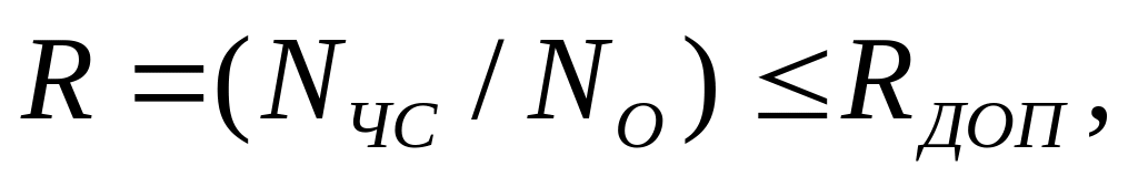 где R – риск; NЧС – число чрезвычайных событий в год; NO – общее число событий в год; RДОП – допустимый риск.
