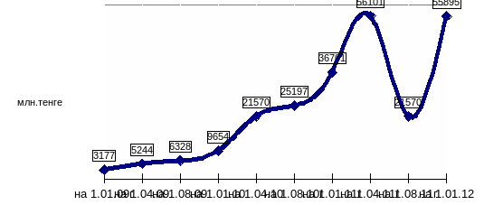В отчетном году на межбанковском рынке размещено на 1 января 2010 года 3385 млн. тенге, что больше чем на начало года на 2785 млн.тенге.