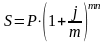 Если начисление процентов происходит несколько (m) раз в году, используется следующая формула: