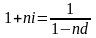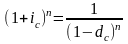 Для простых учетных ставок аналогичное уравнение эквивалентности будет иметь вид: