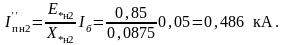 Сверхпереходное значение тока короткого трехфазного замыкания в кА определяют по формуле (22).
