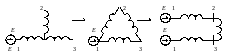 Рис. 1. Преобразование трехлучевой звезды с ЭДС в разрезанный треугольник