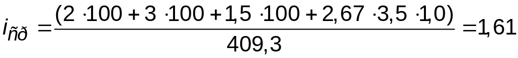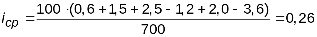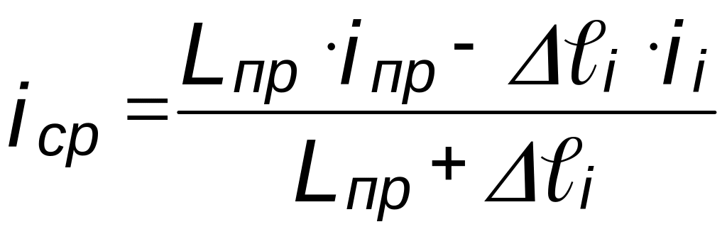 Уклоны элементов профиля могут быть направлены в противоположные стороны. Тогда в расчетной формуле уклоны одного направления записываются со знаком плюс, а другого – со знаком минус. Расчет среднего уклона для всей длины пути приведен на рис.4.5.