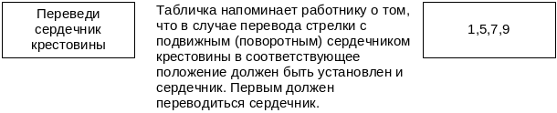 На станциях, имеющих стрелки с подвижным (поворотным) сердечником крестовины, курбели имеют предупреждающую табличку, на оборотной стороне которой наносятся номера таких стрелок: