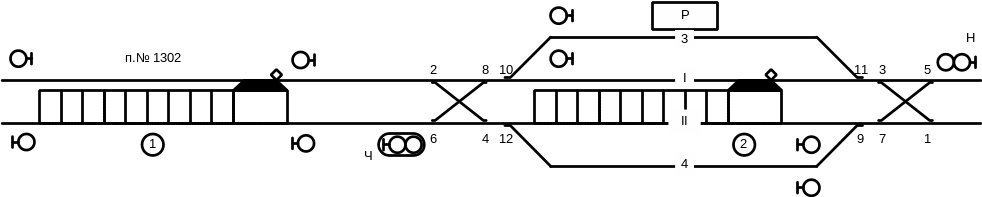 - график последовательности и продолжительности операций по приему (отправлению) поезда (рис.4.16.).