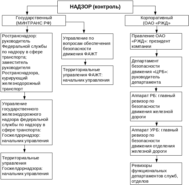 Рис. 2.1. – Структурная схема надзора (контроля) за безопасностью движения на железнодорожном транспорте