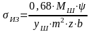 Напряжение изгиба в оси диаметром 28,58мм будет равно: