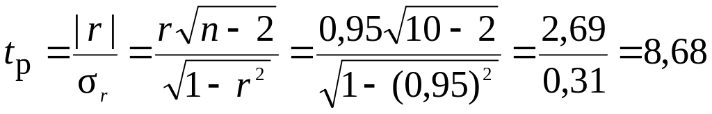 Вначале проверки определяется расчетное значение случайной величины по распределению Стъюдента