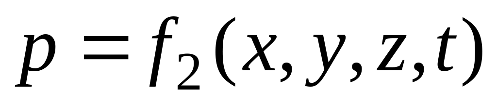 В общем случае для потока жидкости скорость движения частицы жидкости и давление являются функциями координат пространства и времени: