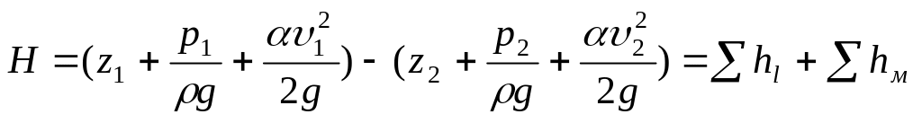 Из уравнения Бернулли, которое вследствие постоянства скоростей по длине, принимает вид