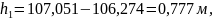 между двумя горизонталями, м;