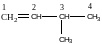 Олефиндер атауында алкандардағы -ан жұрнағы -ен жұрнағына ауысады. Цифрмен қос байланыс орны көрсетіледі, негізгі тізбек ретінде қос байланыс тұрған тізбек алынады, көміртегі атомдарын нөмірлеу қос байланысқа жақын атомнан басталады: