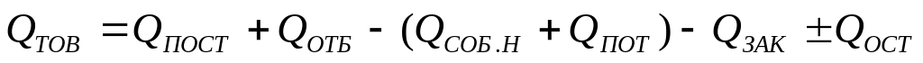 Одним из основных показателей транспорта и поставки газа является объем товарного газа (QТОВ), который определяется по формуле: