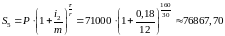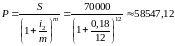 Вычислим первоначальную сумму при ежемесячном начислении в течение года сложных процентов с годовой ставкой .