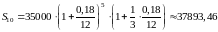 Вычислим аналогично I и II наращенные суммы и проценты с имеющихся 35000 рублей и аналогично III наращенную сумму и проценты с 1200 единиц валюты.