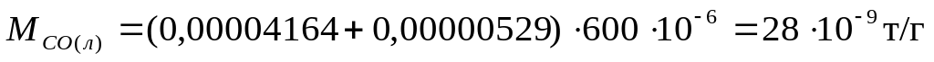 Выброс окиси углерода валовой, т/год, и максимально разовый, г/с, определяется по формулам