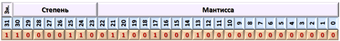степень - определяет степень 2, на которую требуется умножить число в нормированной форме. Поскольку степень 2 для числа в нормированной форме может быть как положительной, так и отрицательной, нулевой степени 2 в представлении вещественного числа соответствует величина сдвига, которая определяется как