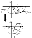 Для упрощения анализа и расчетов сместим начало радиуса-вектора из начала координат в точку (-1, j0), а вместо вспомогательной функции W1(j) используем АФХ разомкнутой системы W(j).